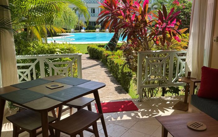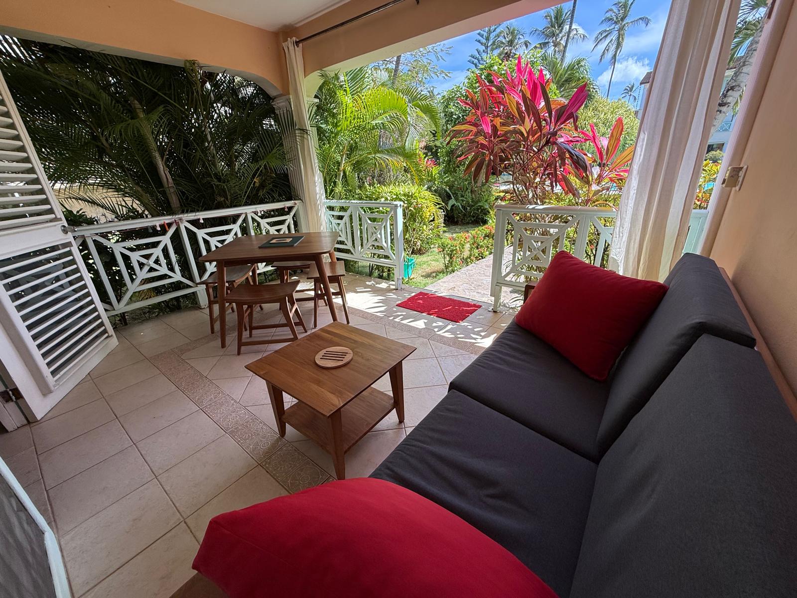 Cet appartement entièrement rénové en 2024 mesure 60 m2 avec une grande chambre, 1 salle de bains, 1 cuisisne/salon et une terrasse. Cet oasis de tranquillité et de verdure se situe à 1 minute à pied de la mer et des commerces. Ici vous n'aurez pas besoin de voiture. Un grand jardin tropical, une immense piscine équipée de tables basses et de transats, un accès privé à la mer, tout est la pour vous faire passer d'inoubliables vacances.