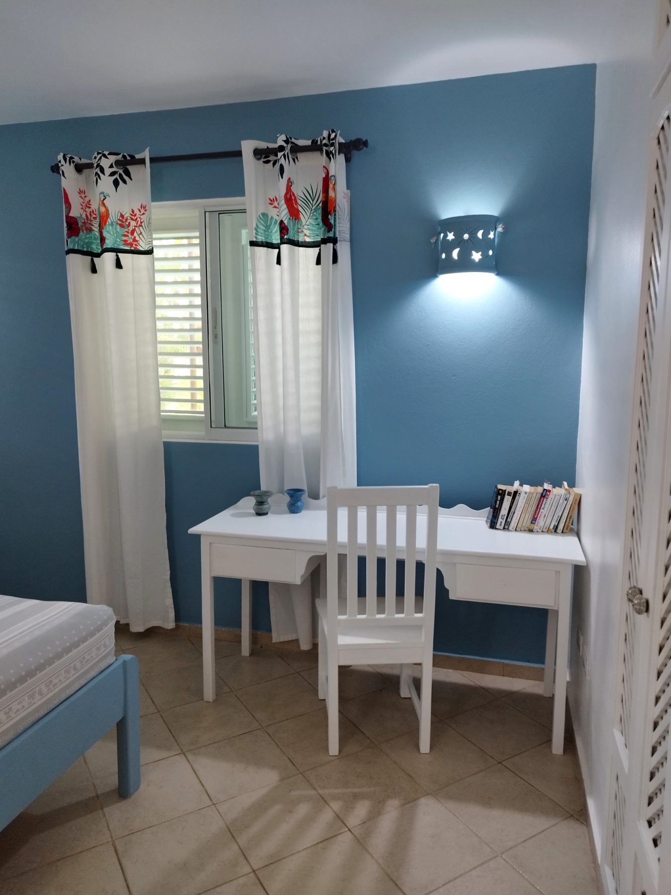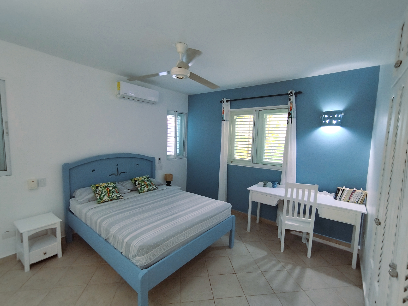 Concernant le logement, vous trouverez tout le confort necessaire pour passer un bon séjour : wifi, clim dans la chambre, ventilateurs de plafond dans toutes les pieces, eau chaude, cuisine équipée, télévision connectée sans supplément.